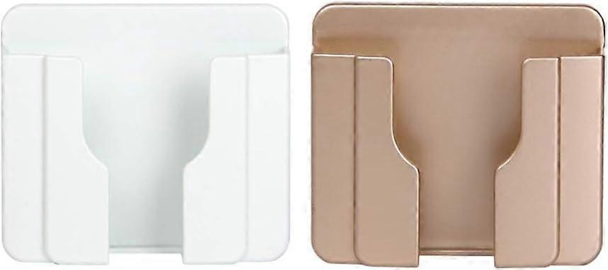 2 Pcs Wall Mount Phone Holder - Wall Mounted Phone Remote Control Storage Box Holder (White + Gold)