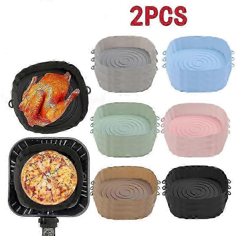 2Pcs Air Fryer Silicone Basket Silicone Mold Airfryer Oven Baking Tray Pizza Fried Chicken Basket Reusable Pan Liner Accessories