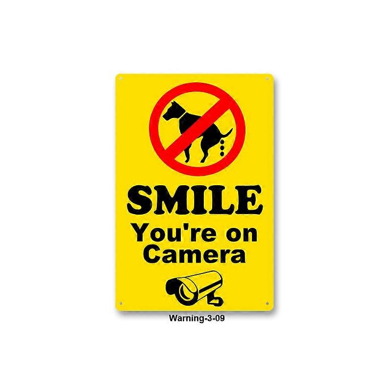 2Pcs Smile Your On Camera Sign Outdoor Dog Sign Dog Walking Warning Sign Park Warm Tip Sign
