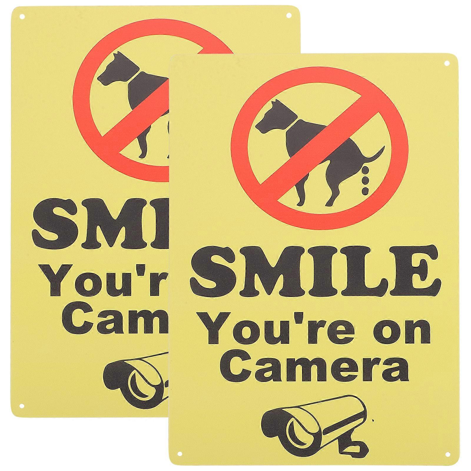 2Pcs Smile Your On Camera Sign Outdoor Dog Sign Dog Walking Warning Sign Park Warm Tip Sign
