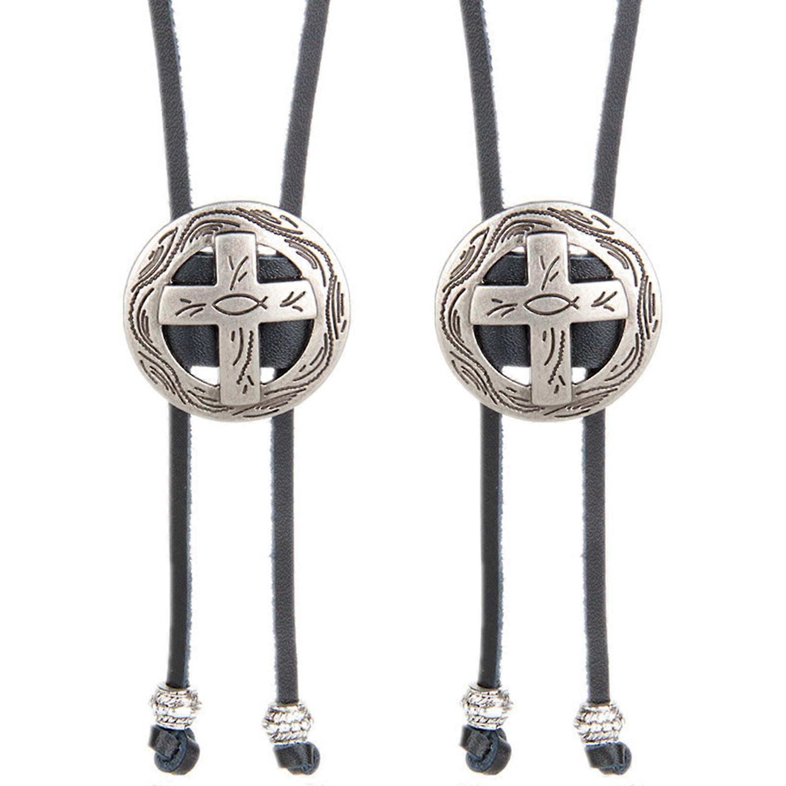 2 Pcs Carving Bolo Tie Cowboy Punk Necktie Western Bolo Tie Metal Charm Bolo Tie Cowboy for Shirt Jeans Black