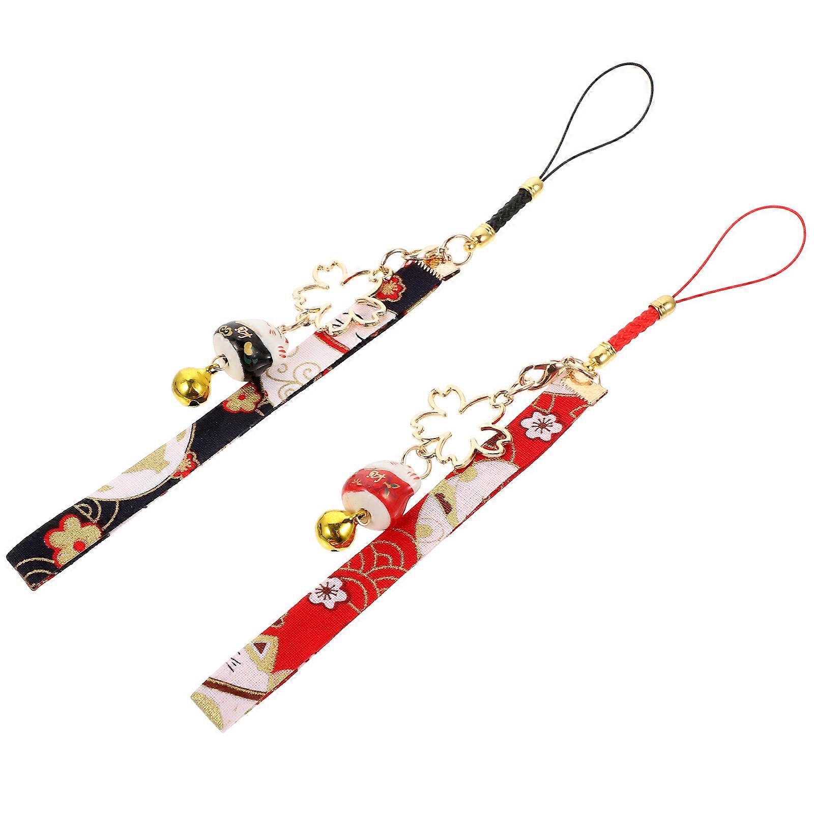 2Pcs Cat Bell Mobile Phone Charms Delicate Fortune Cat Pendant Hanging Phone Strap