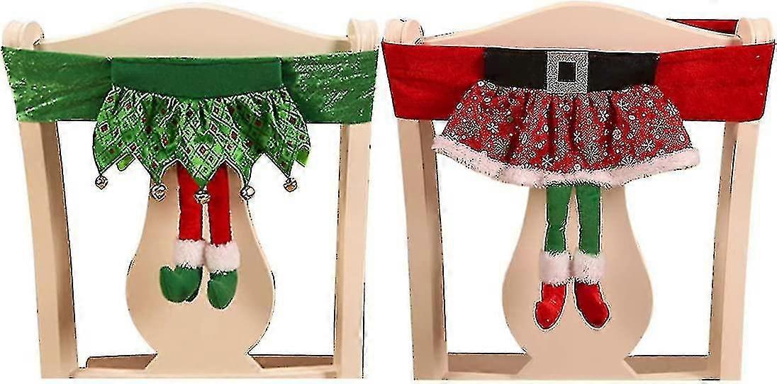 2 Pcs Christmas Chair Cover, Christmas Decoration Chair Back Cover Santa Claus Belt Chair Cover Christmas Elf Chair Cover