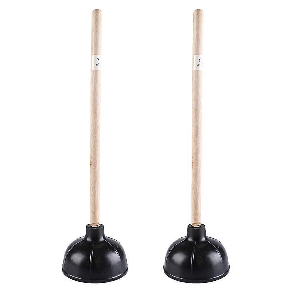2Pcs Rubber Toilet Plungers Wooden Handle Bathroom Toilet Cleaning Tools (Black)