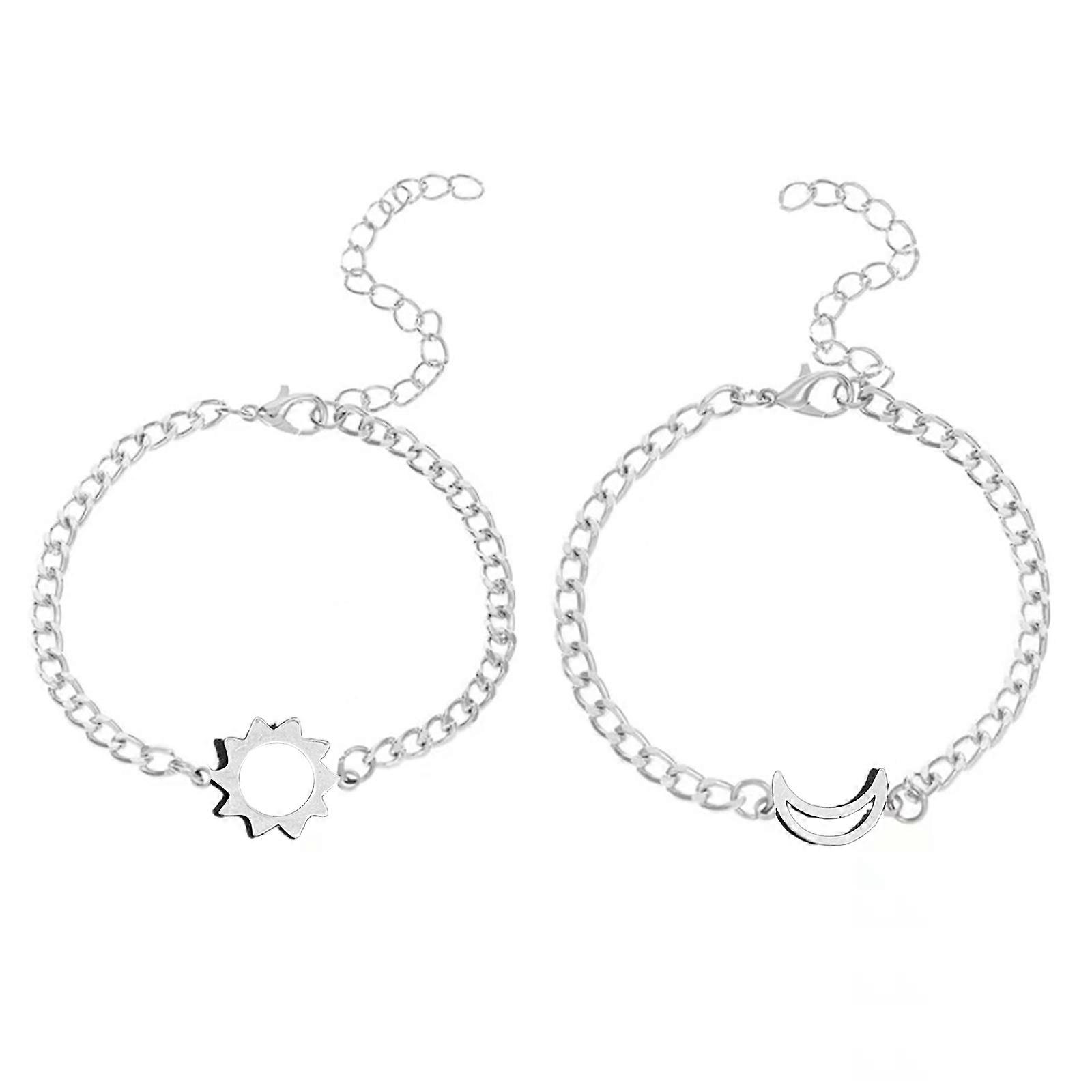 2Pcs Sun Moon Love Heart Hollow Bracelets Stainless Steel Adjustable Couple Card Bracelet Gift for Women Men Girls