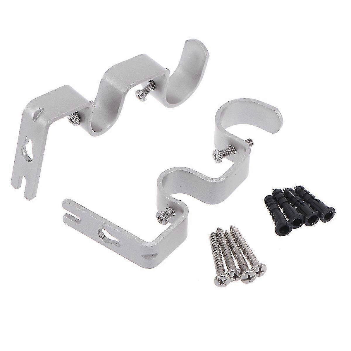 2 Pcs Silver Curtain Rod Brackets - Drapery Holder for Pole & Rod