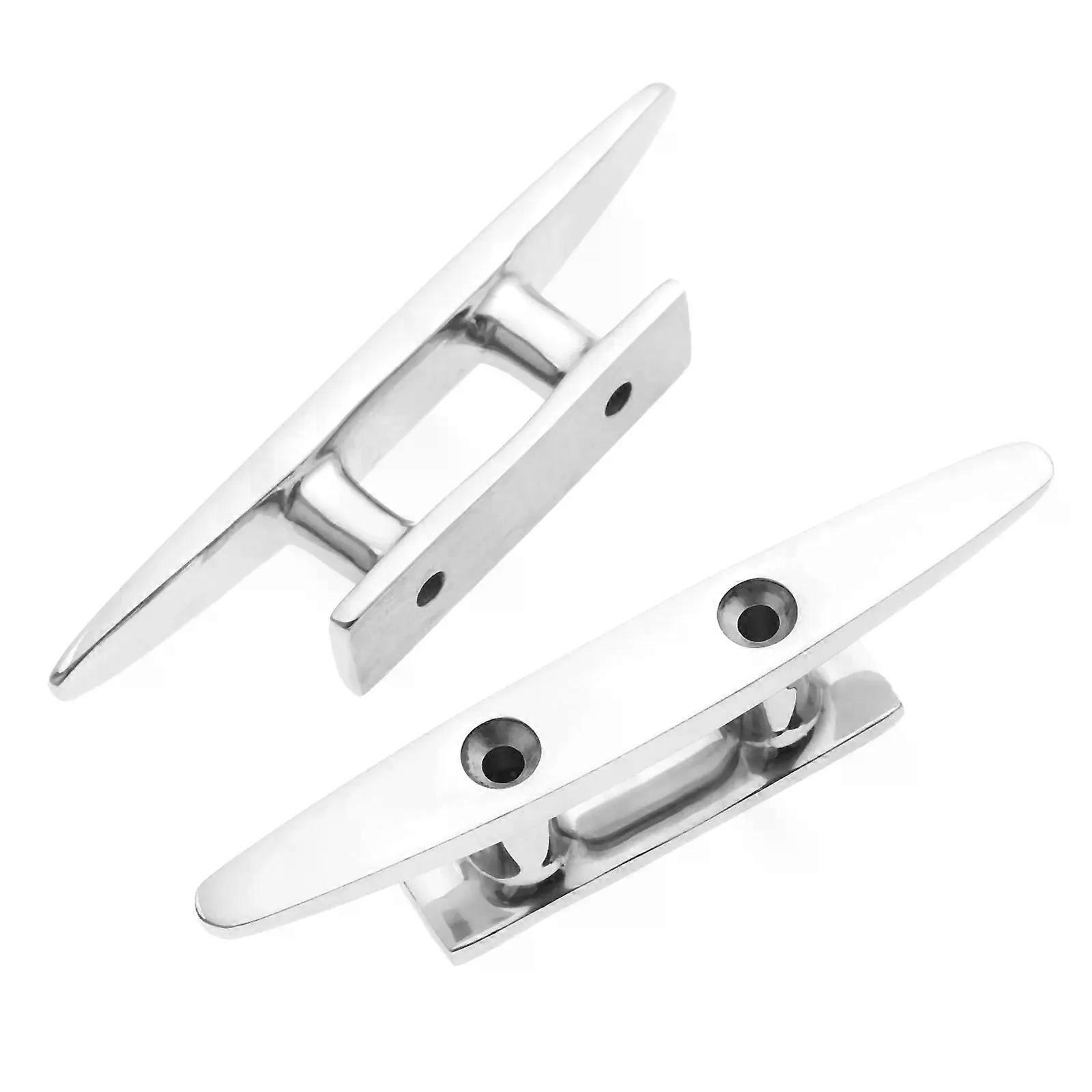 2Pcs Stainless Steel Low Flat Cleat 100mm 4 Inch Deck Hollow Open Base Cleat Flush Mooring Cleat for Marine Boat Deck Rope Tie