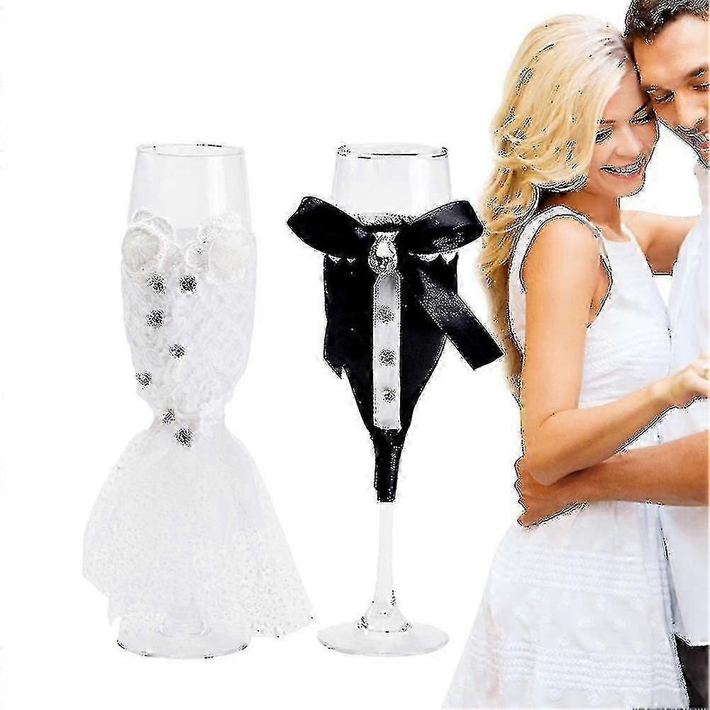 2pcs/set Wedding Wine Champagne Glasses Cup Bride And Groom Black White Dress Decorative Cup Red Wine Glass Cup Wedding Decor Gifts