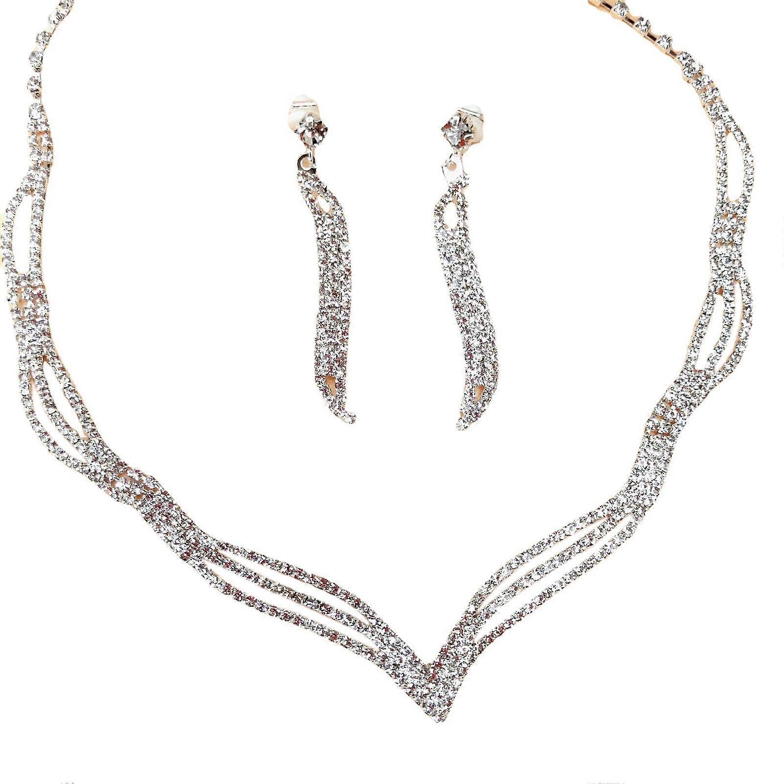 2Pcs/Set Geometry Shape Exquisite Workmanship Necklace Earrings Set Noble Shining Rhinestone Choker Necklace Drop Earrings Jewelry Accessory