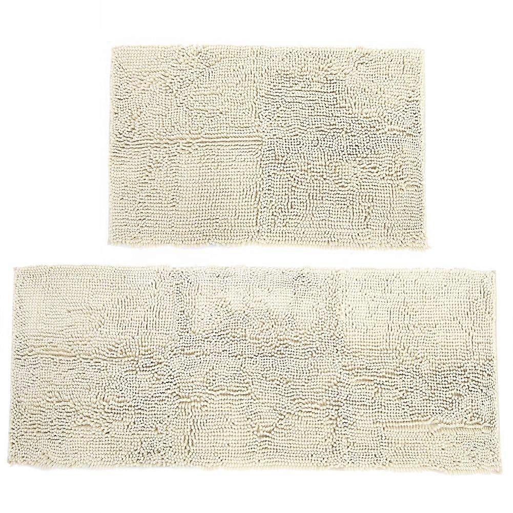 2pcs / set Chenille Anti-slip Water Absorbent Non-slip Mat Bathroom Living Room (White)