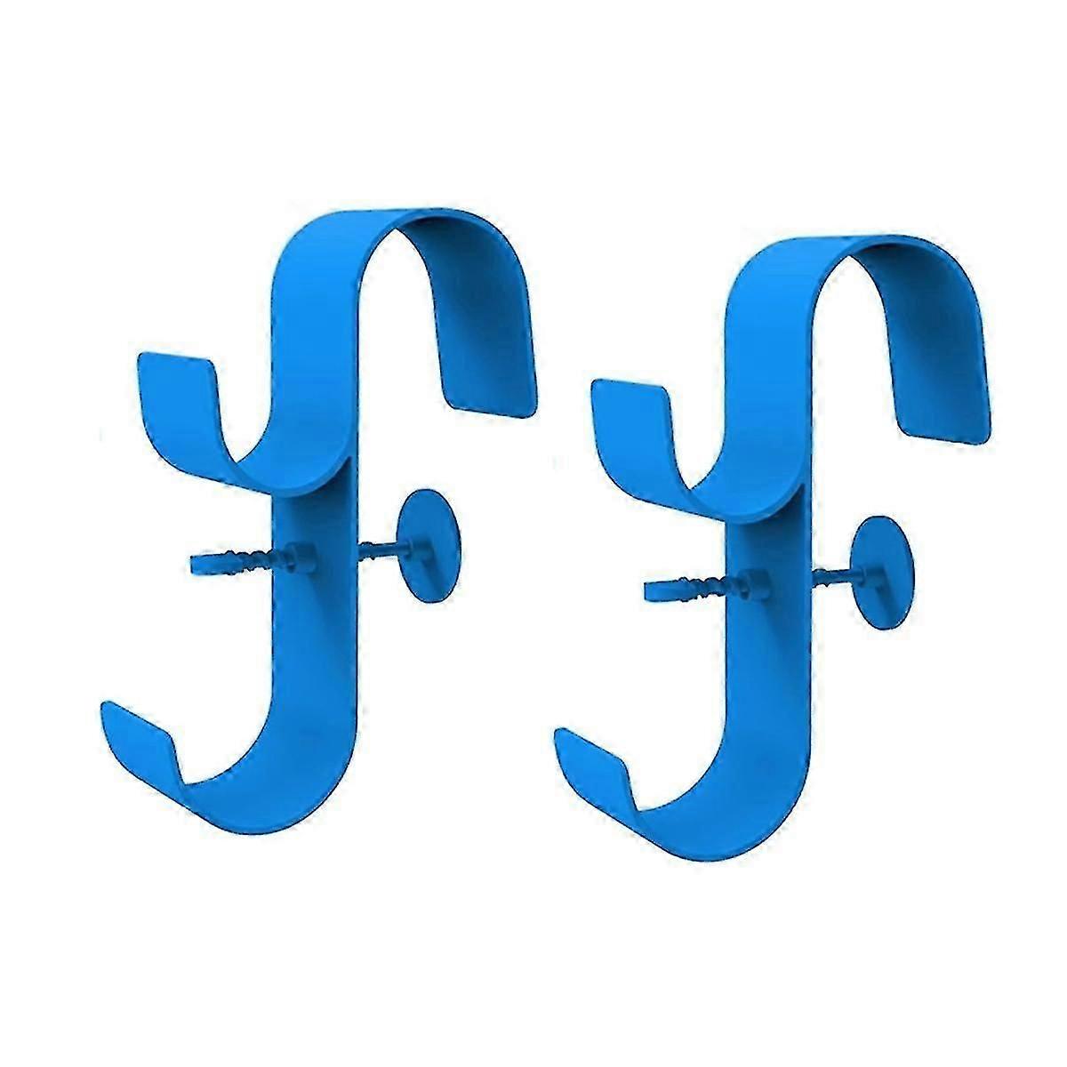 2pcs Set Wide Pool Pole Hangers Heavy Duty Blue Holder Hooks With Screws Perfect Hook Holders For Swimming Pool