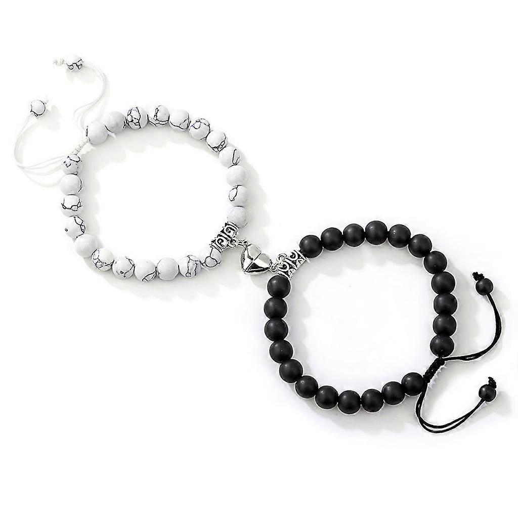 Features: 100% brand new and high quality Every pair of lovers has their own tokens for their pledge of eternal love, the magnet represents the natural attraction between men and women, No matter how long the time has passed, hope everyone can embrace their true love. Material:We choose high quality Environmentally Friendly & Hypoallergenic Natural Stone to protect you skin very well. Design:This is a very creative bracelet, sold as a set. Each bracelet is equipped with magnets. When the two bracelets are close to each other, they will attract each other. Gift Idea:Our bracelet are great gift idea for wife, mother, girlfriend, lover on birthday, anniversary, Christmas, mother's day, Valentines' day, thanksgiving day etc. Risk free 30-day Return and Refund policy for Defective item and we offer lifetime customer service, If you are not satisfied with our products, please contact us promptly. Package Includes: 1 Pairx Couple Bracelet Specifications: Color: Multicolor Material: Stone Bead: 8mm/0.31in Bracelet Max Length: 27.94cm/11in (More detailed,please see photo.) Quantity:1 Pair note: Please allow a little error on the size due to manual measurement. The color might exist slightly difference due to different displays.