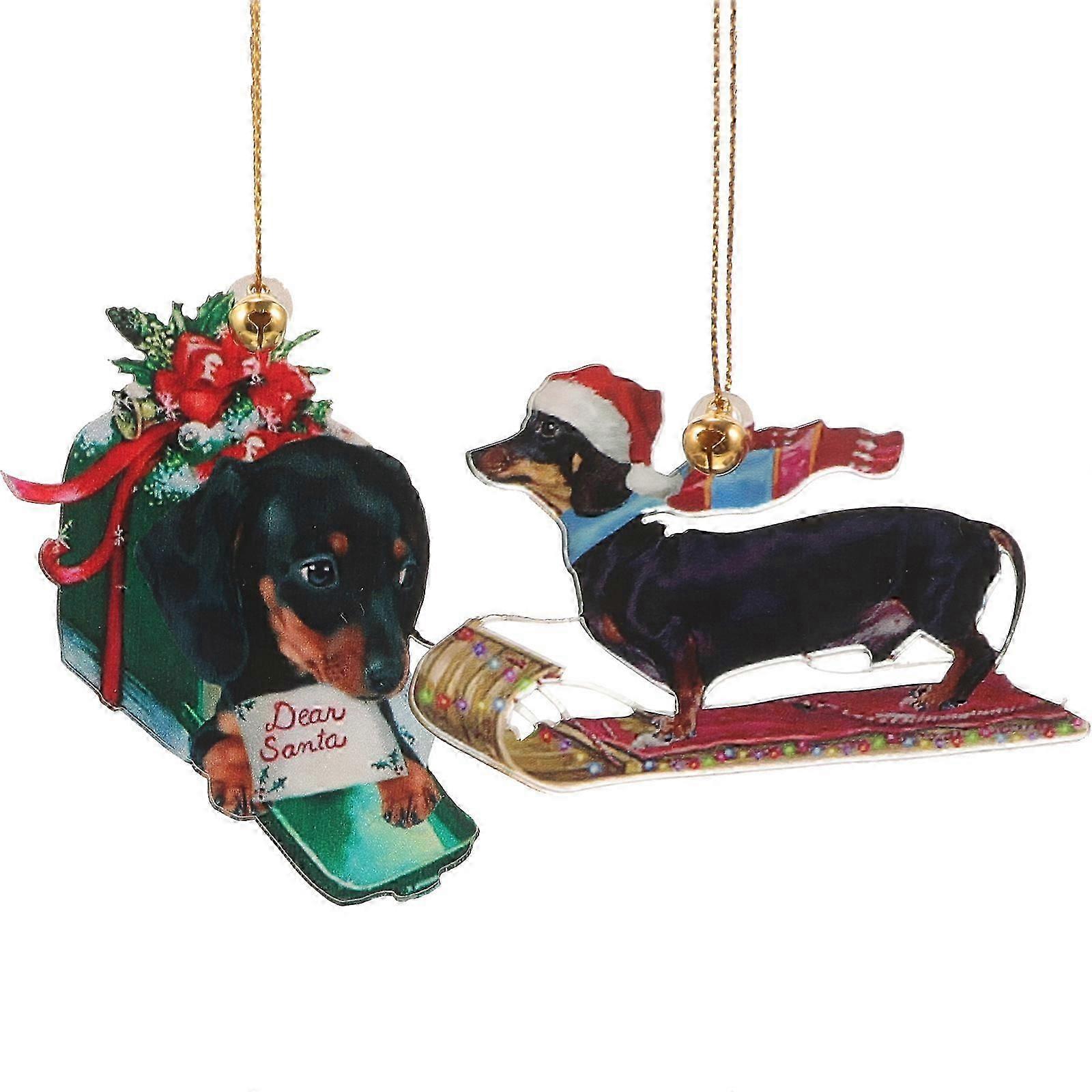2Pcs Dachshund Christmas Ornaments Xmas Sausage Dog Acrylic Pendant for Car Xmas Tree