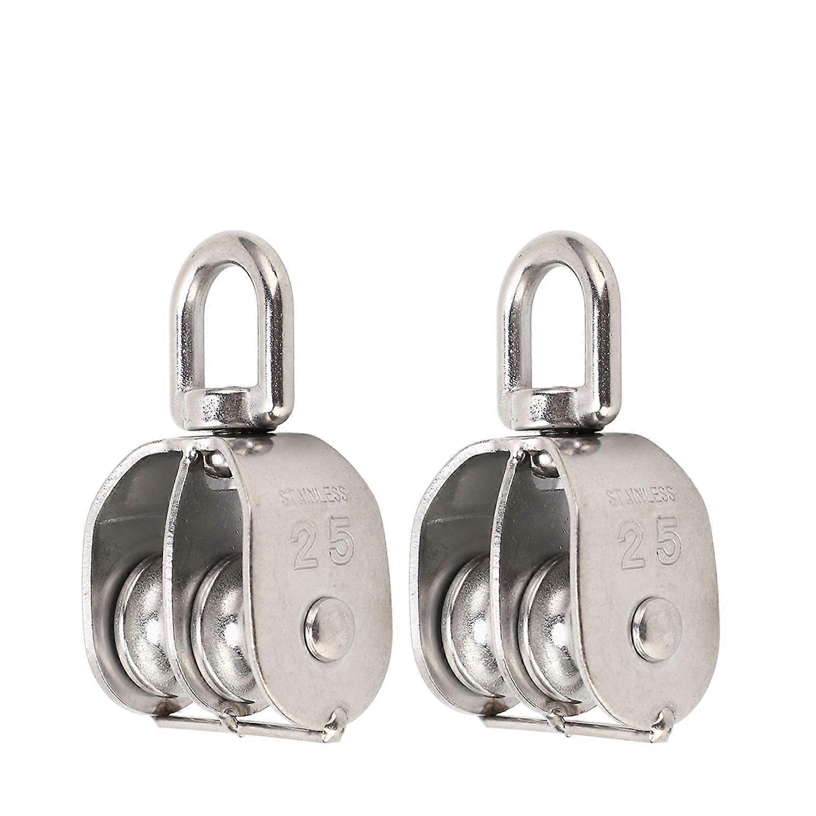 2Pcs Double Pulley Stainless Steel M25 Double Pulley Block 150kg Bearing Swivel Pulley Wheel Roller
