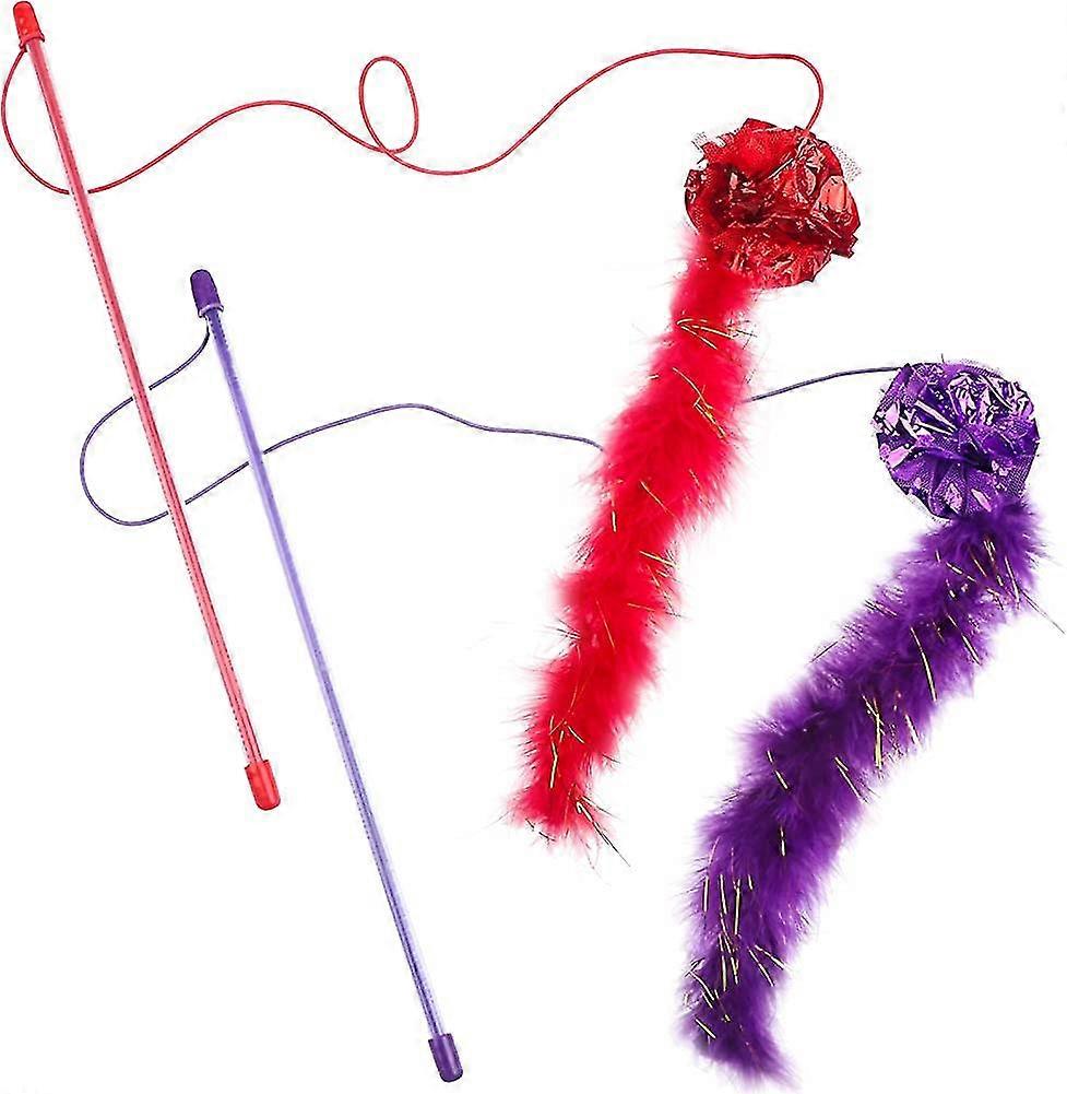 2 Pcs Teaser Cat Toys Interactive Cat Feather Toys For Acsergery Indoor Cats Funny Cat Gift