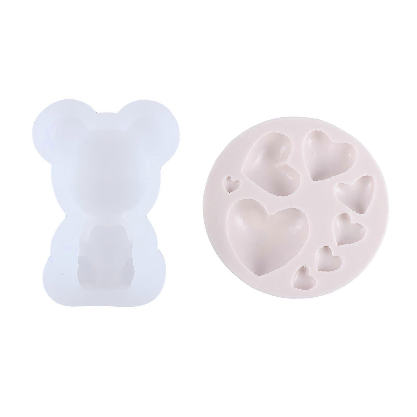 2Pcs Valentine Chocolate Mold DIY Silicone Mold Bear Heart Casting Mold