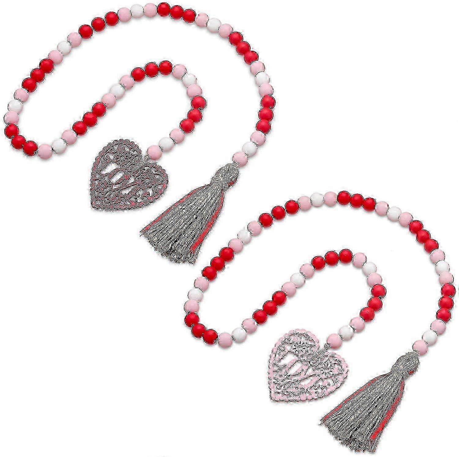2Pcs Valentine's Day Bead Garlands Wooden Heart Bead Tiered Tray Decoration