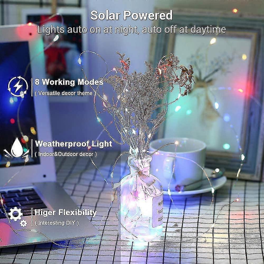 [pack Of 2] Solar Fairy Lights Outdoor, 12m 100 Led Colorful Christmas Fairy Lights Outdoor Copper Wire Solar Fairy Lights 8 Modes Waterproof Indoor S