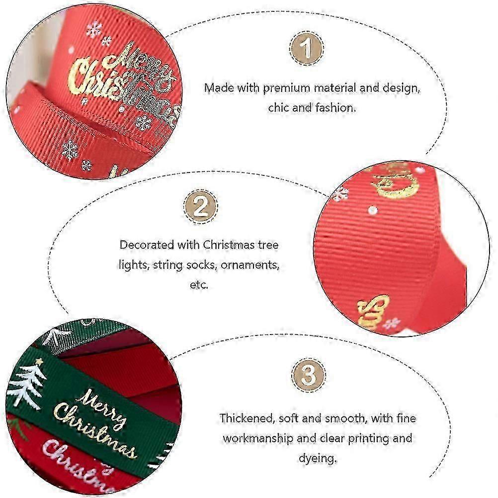 2pcs/Package Christmas Decoration Ribbon Printed Ribbon DIY Supplies Xmas Ribbon