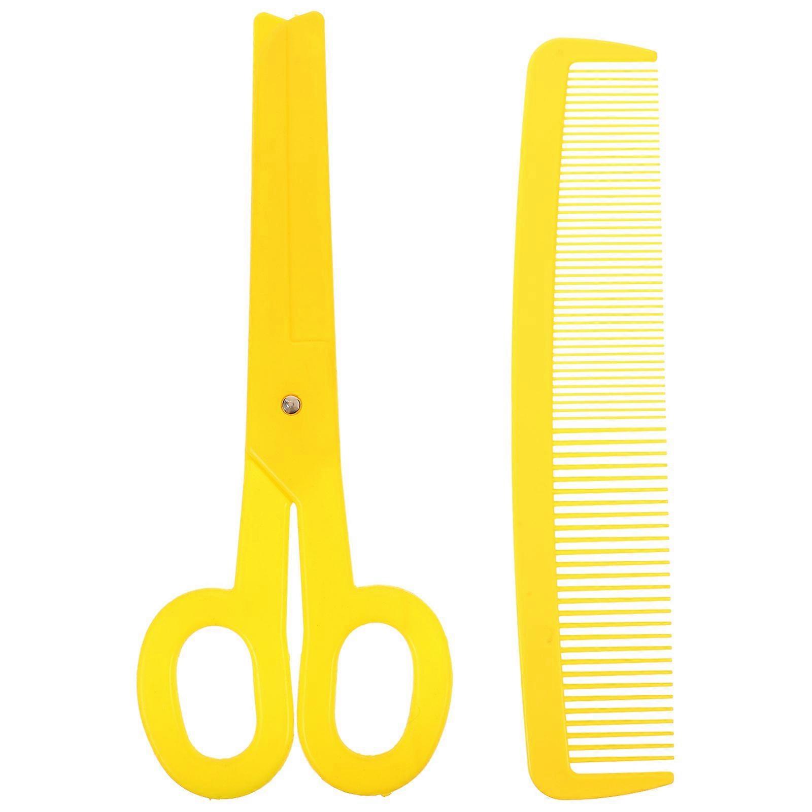 2pcs Party Carnival Giant Comb Prop Carnival Scissors Halloween Jumbo Clown Giant Huge Comb Hair Brush for Women Lady Yellow
