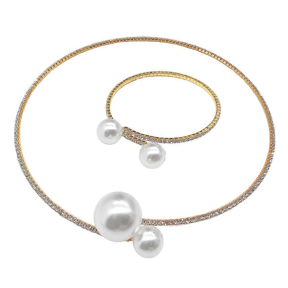 2Pcs Pearl Hand Chain Necklace Set Jewelry Decoration for Anniversary Celebrations Using Round Shape in Golden
