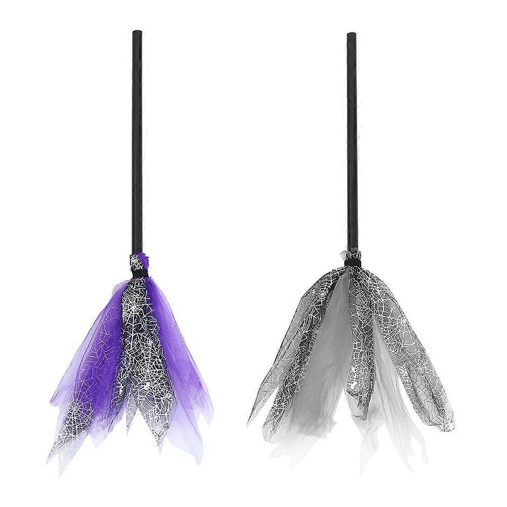 2Pcs Halloween Witch Broom Plastic Halloween Prop Cosplay Witch Broom Prop