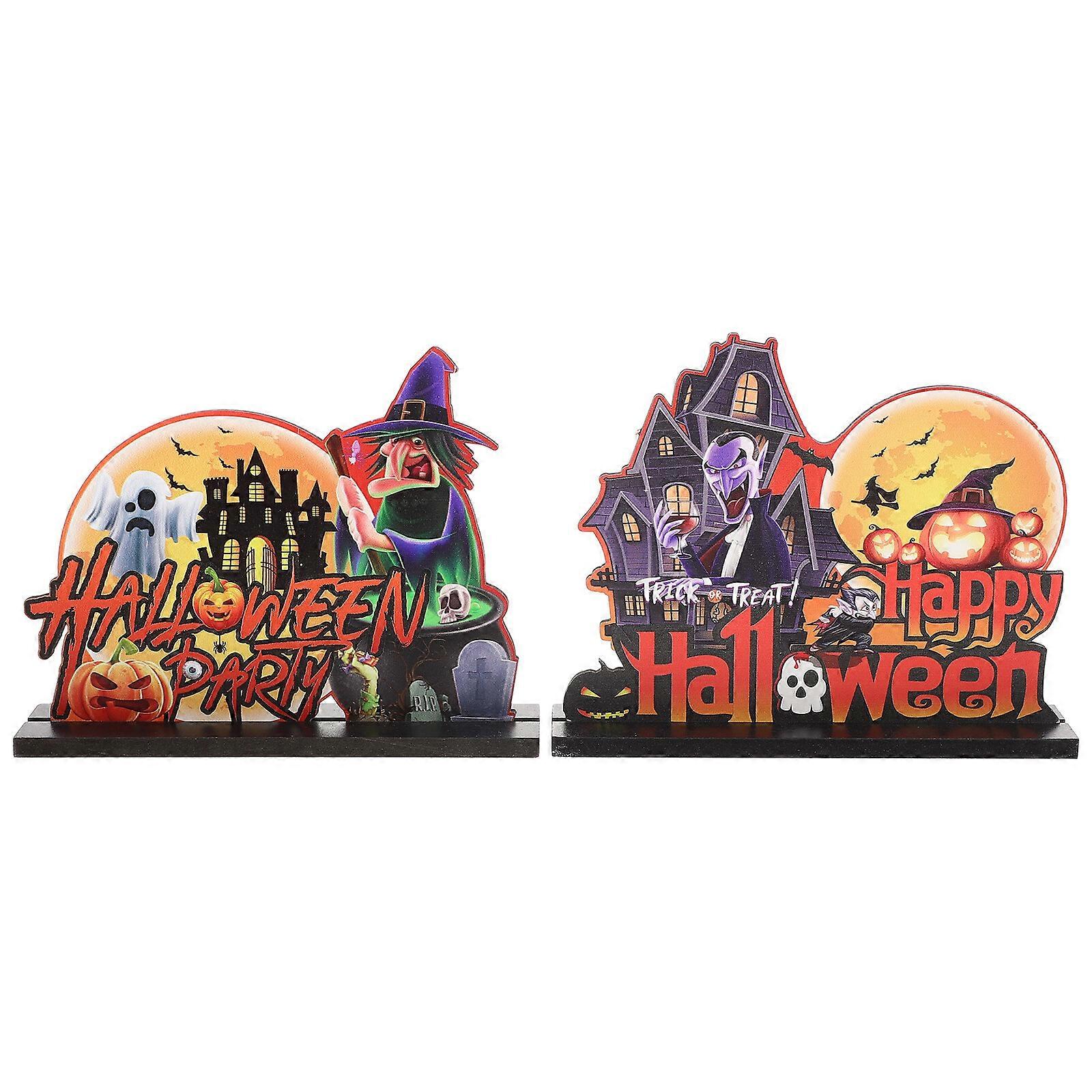 2Pcs Halloween Style Table Decorations Wooden Table Sign Halloween Wooden Desk Signs