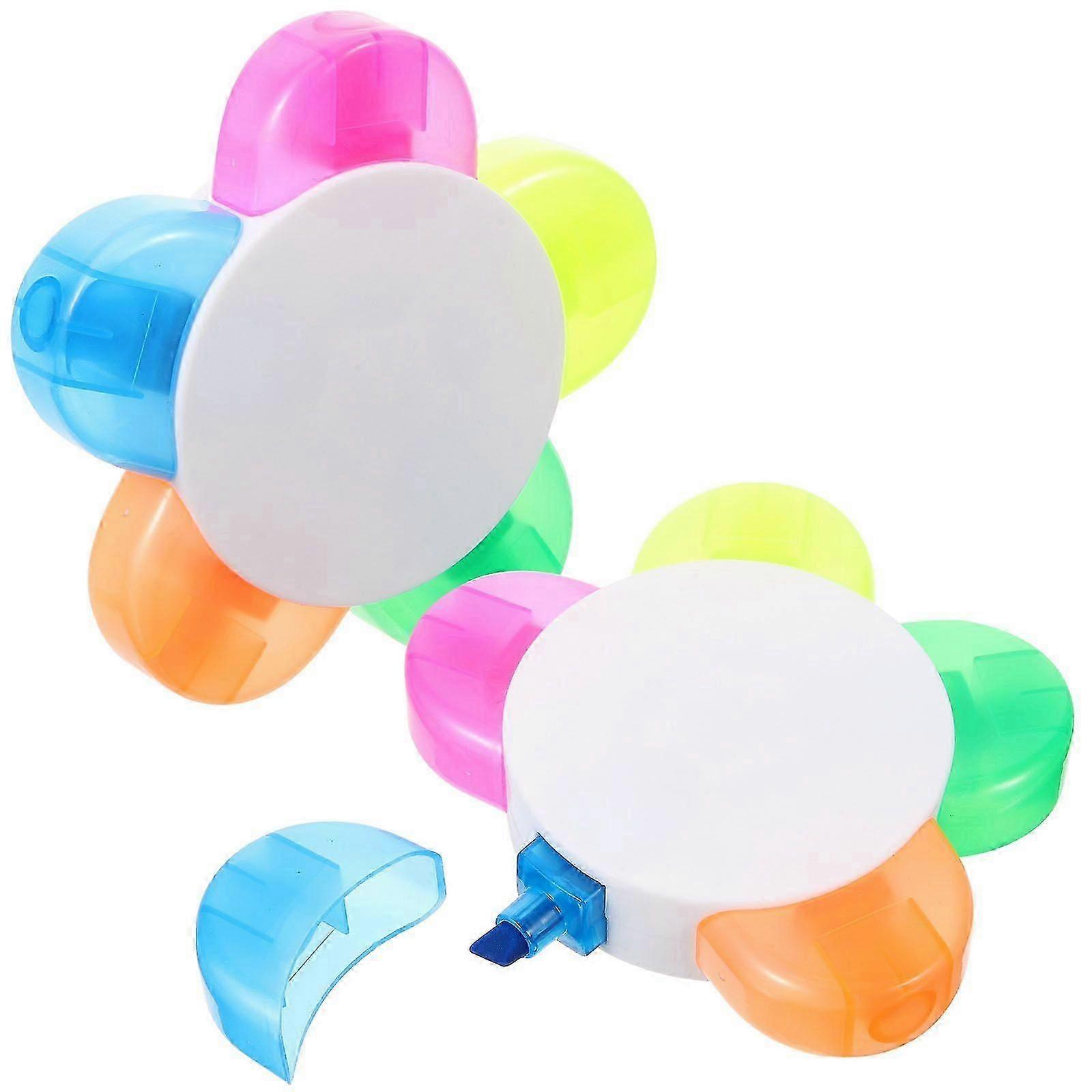 2 Pcs Half Petal Shaped Fluorescent Pens 5-in-1 Highlighter Pens Paintbrushes
