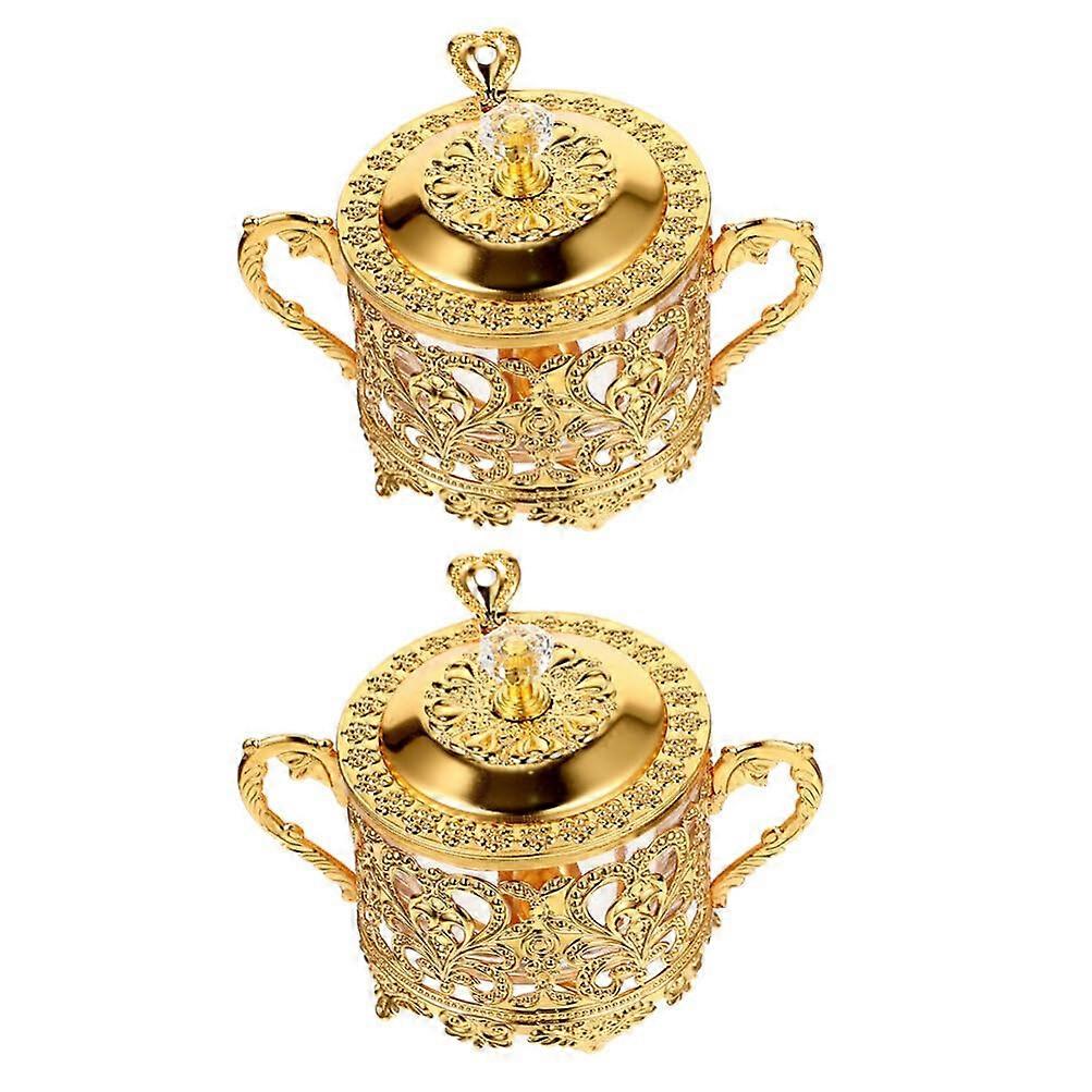 2 Pcs Vintage Sugar Bowl Kitchen Canister Seasoning Container Golden Size