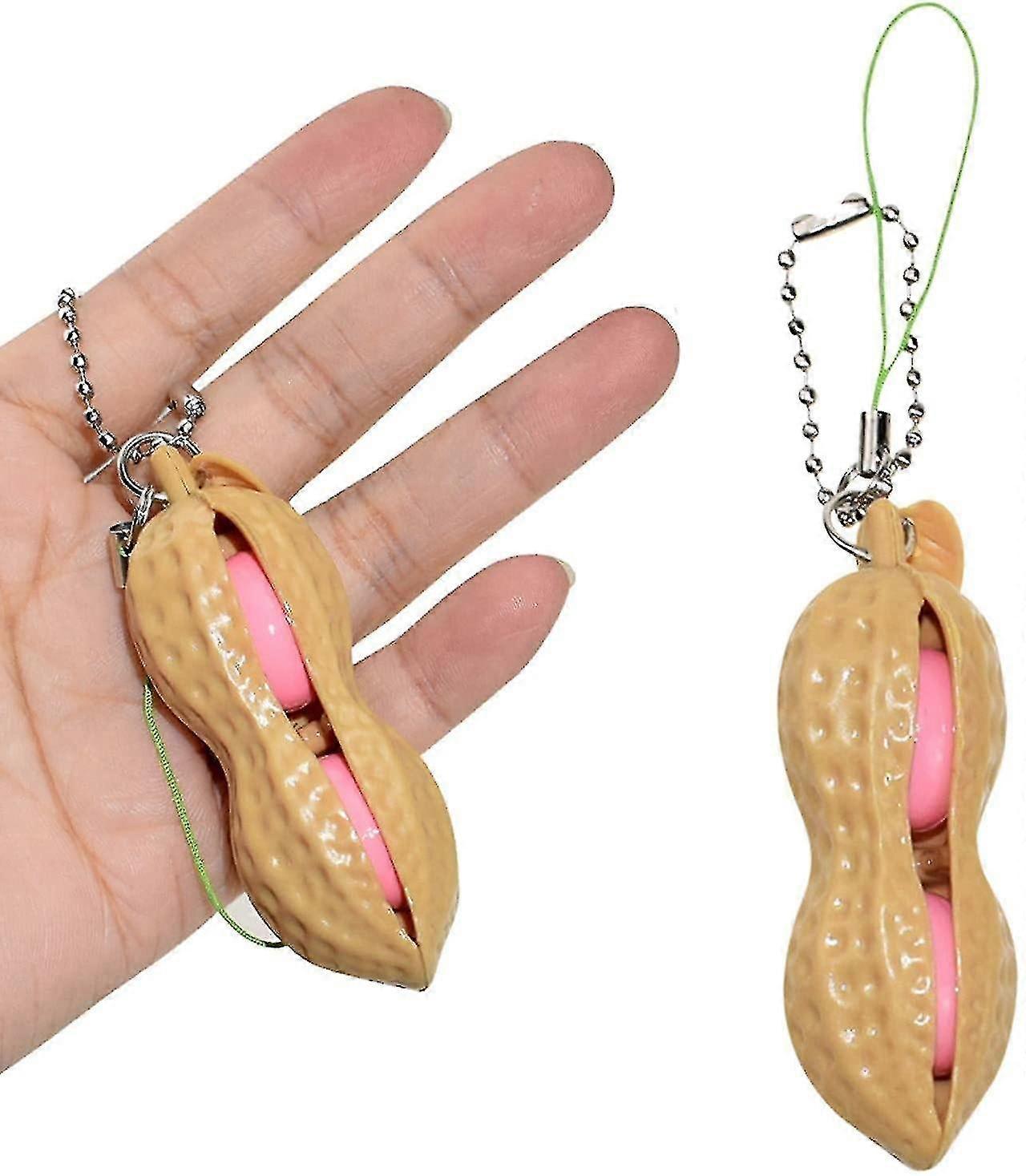 2 Pcs Fidget Squeeze Toy Peanut Extrusion Soybean Stress Relieving Toys Keychain