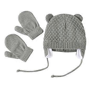 2pcs Baby Kids Winter Warm Fleece Knitted Hat + Gloves Set