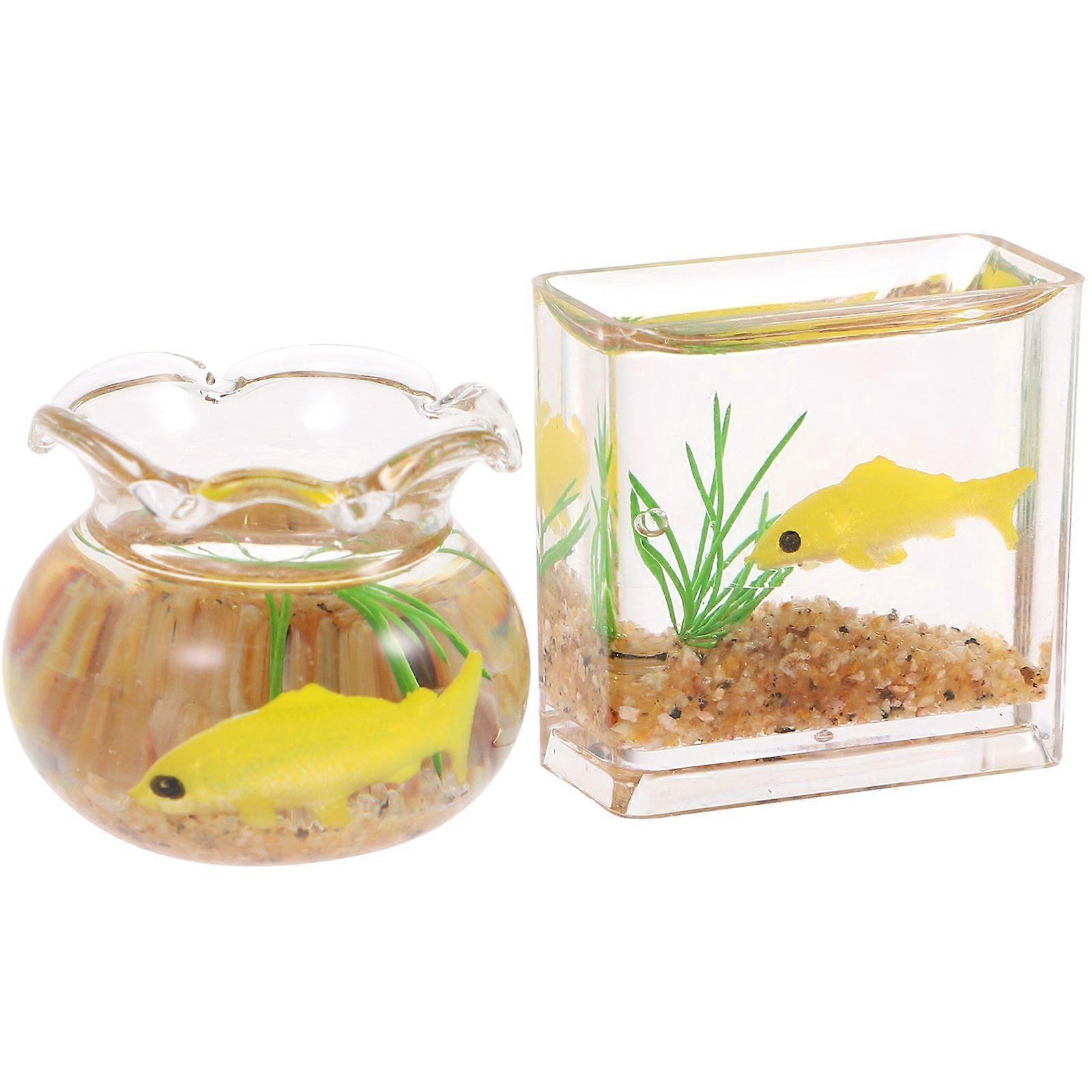 2 Pcs Mini House Fish Tank Desktop Ornaments Artificial Carp Aquarium Decor