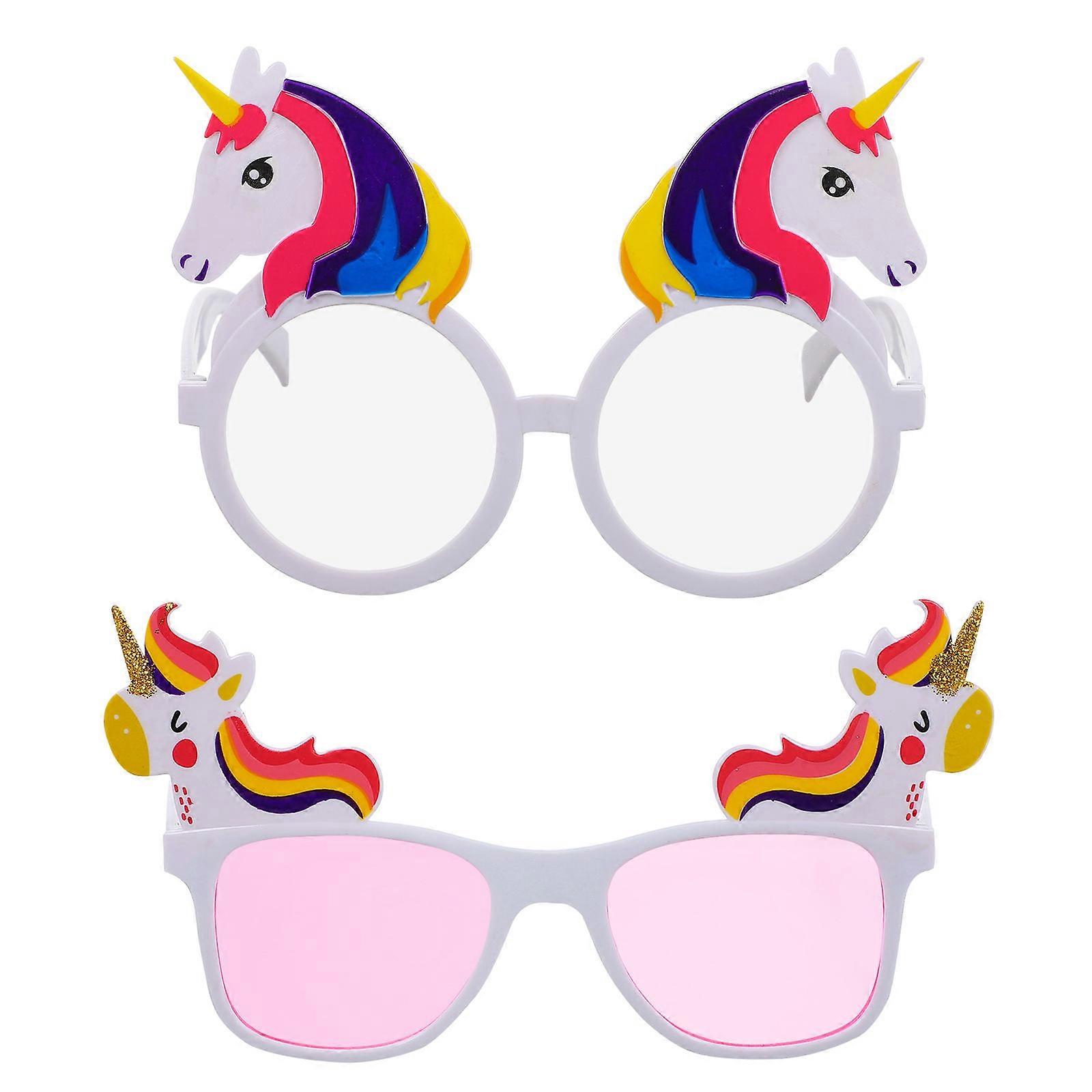2Pcs Unicorn Shape Birthday Party Glasses Assorted Color Novelty Eyewear for Children Adults Friends