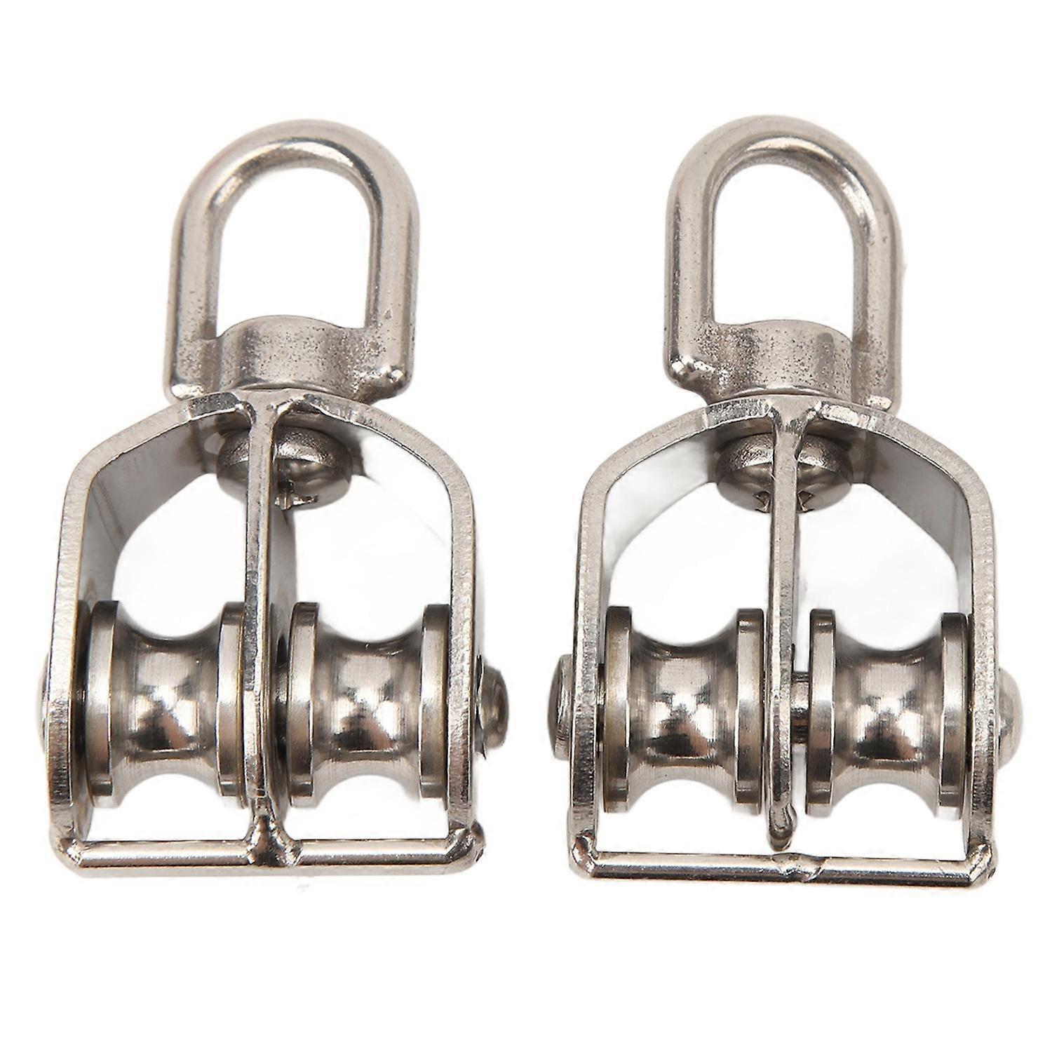 2Pcs Lifting Double Pulley Block Heavy Duty Stainless Steel Roller M15 Wire Rope Crane Hanging 35KG