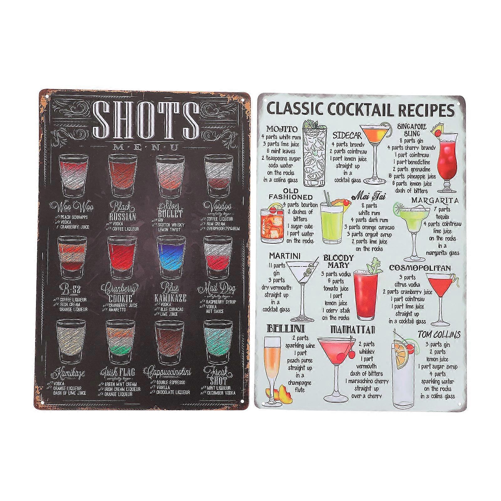 2Pcs Retro Beverage Metal Tin Sign Cocktail Recipe Poster Wall Decor Wall Iron Painting