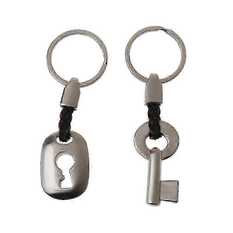 2 Pcs Lock & Key Couple Keychain Leather Key Fob Matching Lover Jewelry