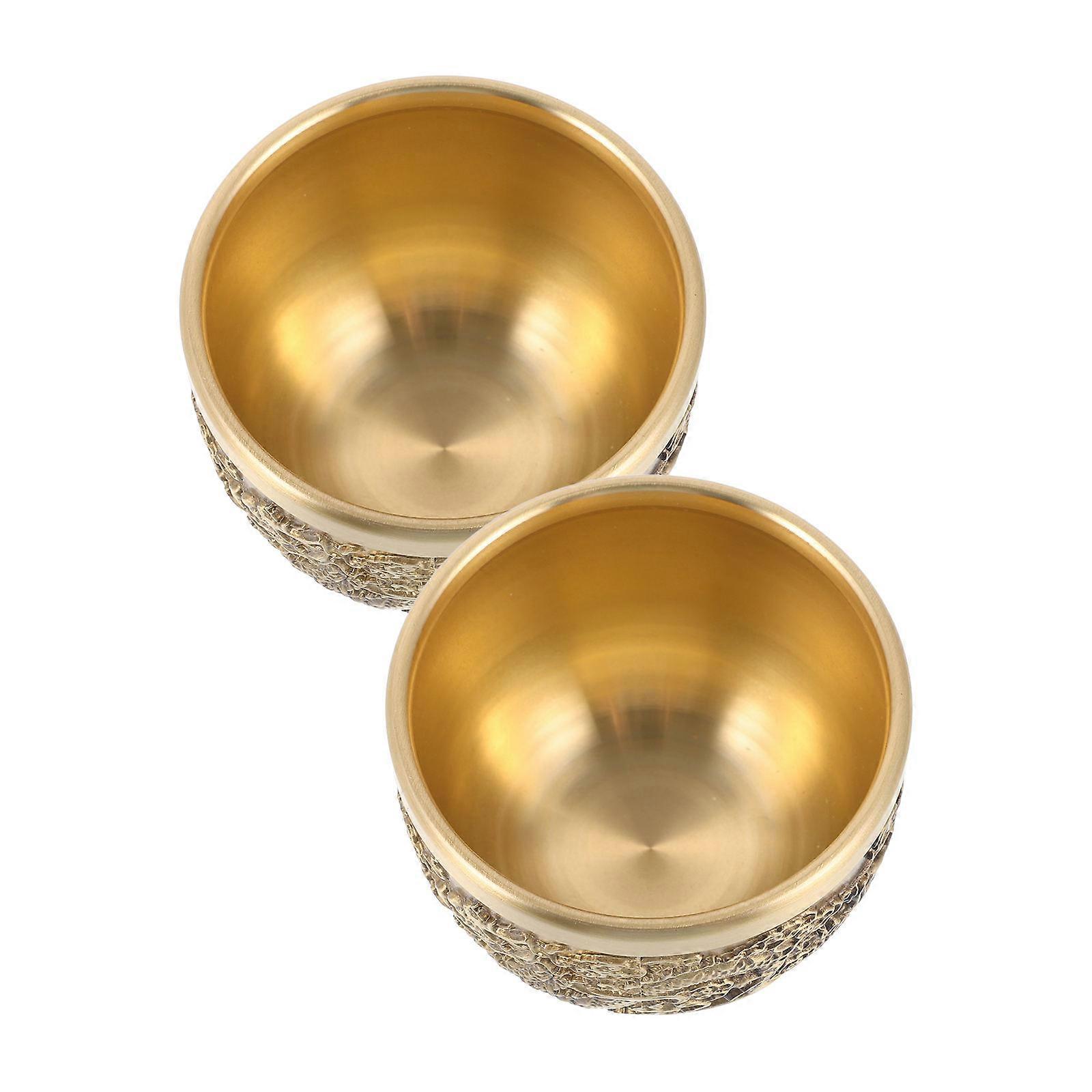 2pcs Chinese Style Dragon Pattern Copper Teacup for Home Decor Golden Vintage Embossed Cup