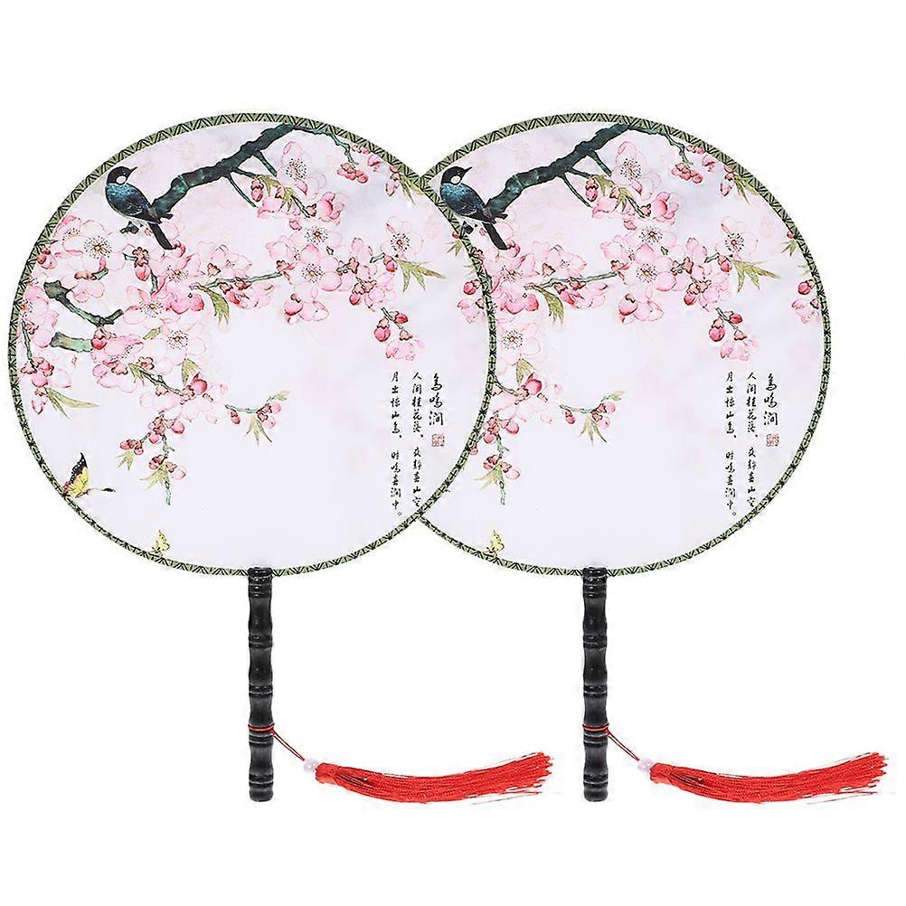 2Pcs Chinese Style Hand Circular Fan Ancient Dance Round Fan Delicate Summer Fan Photo Prop