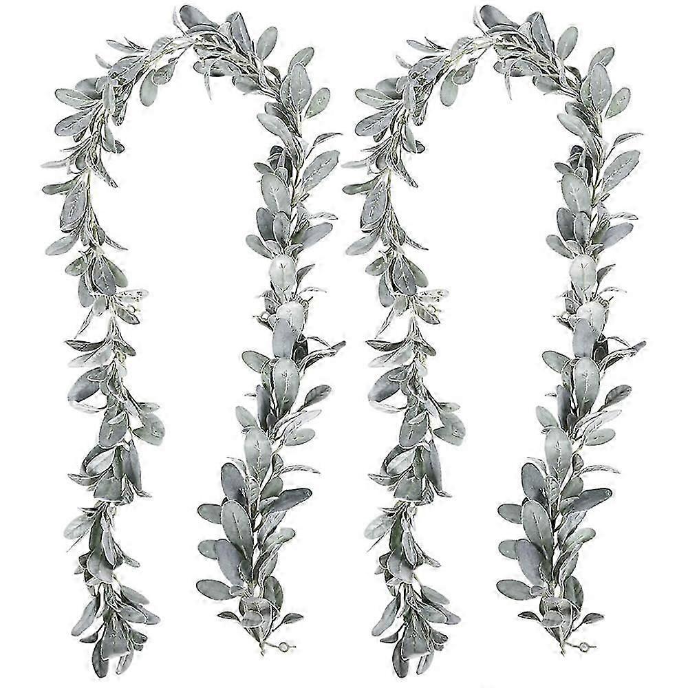 2 Pcs Artificial Flocked Lambs Ear Garland - 6Ft/Piece Soft Faux Vine Greenery and Leaves for Framh