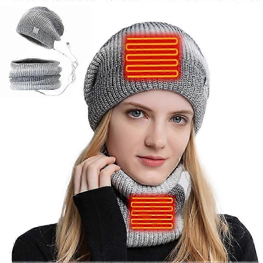 2Pcs Heated Hat Scarf Set USB Heat Winter Tie Dye Knitted Hat Scarf for Men