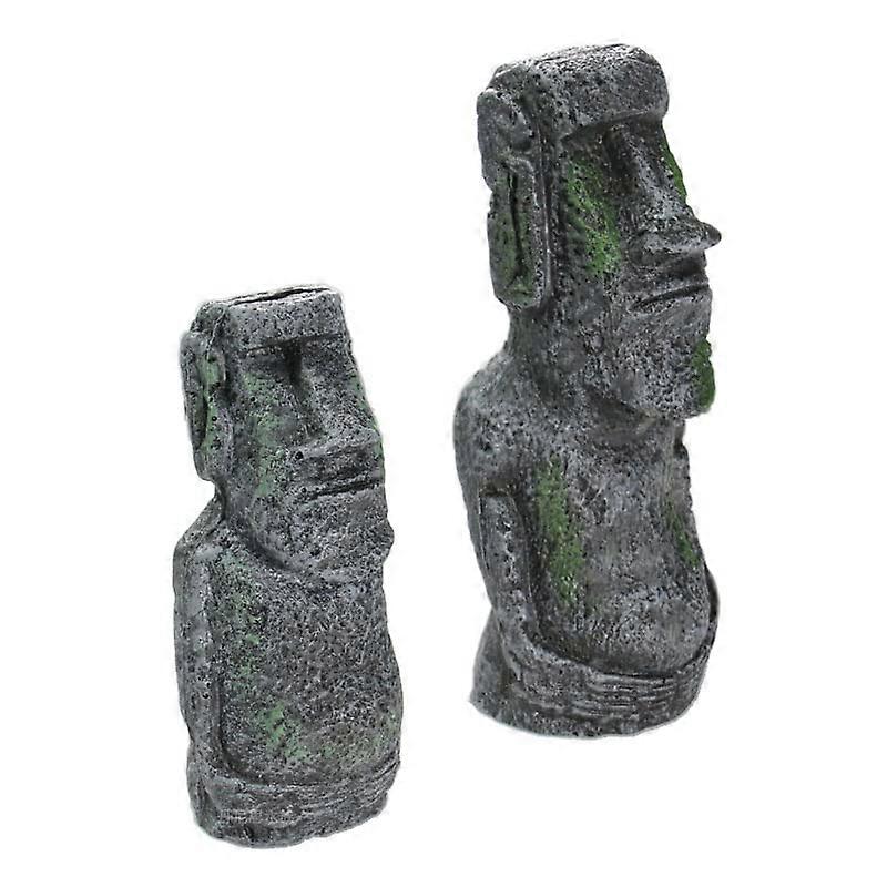 2Pcs Ancient Easter Island Head Statue Portrait Aquarium Fish Tank Ornament Home Desktop Decoration Accessories