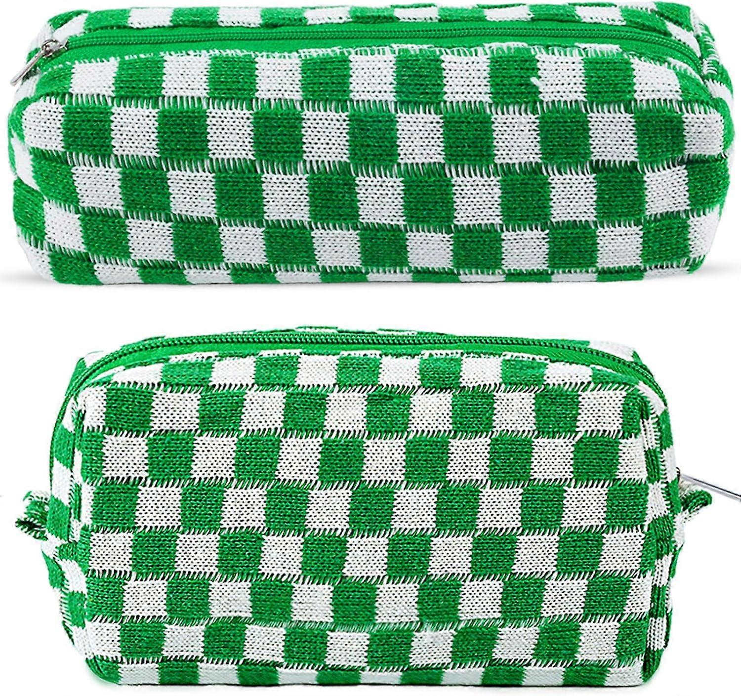 2Pcs Checkered Makeup Bag Set - Medium Small Cosmetic Bag, Travel Toiletry Organizer, Preppy Y2K Aesthetic (Green)