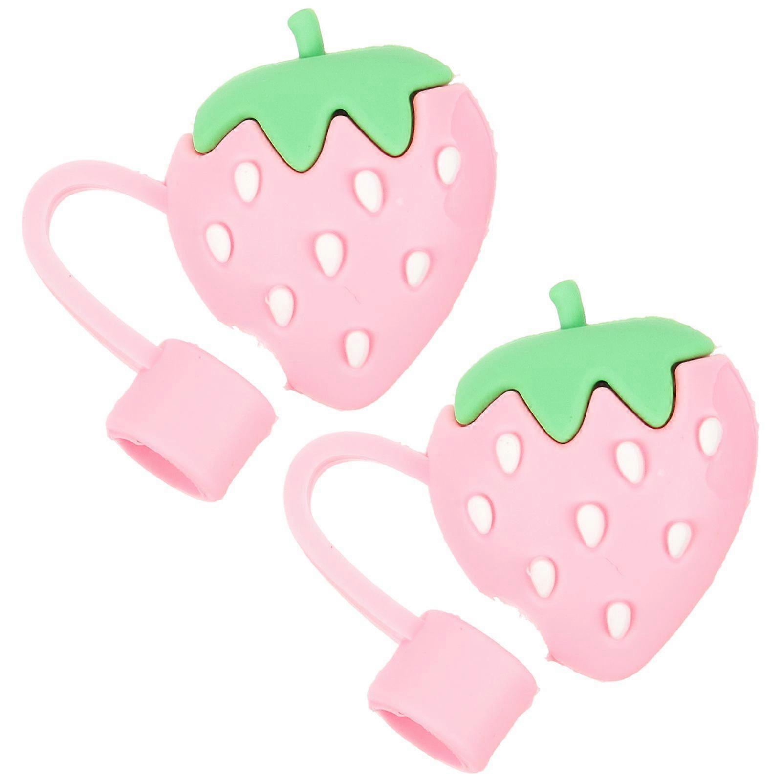 2Pcs Adorable Silicone Straw Dust Plugs Safe Beverage Straw Caps (Strawberry)