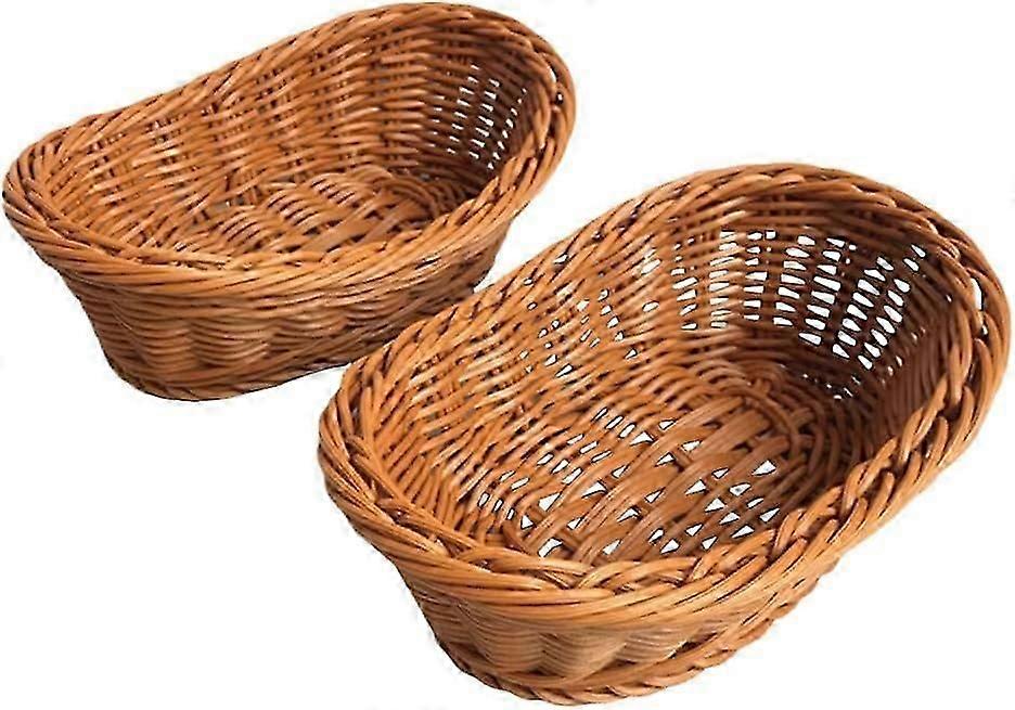 2pcs Imitation Rattan Woven Bread Baskets Poly Wicker Fruit Baskets for Food Serving Display Vegetables Home Kitchen Restaurant Outdoor Brown L