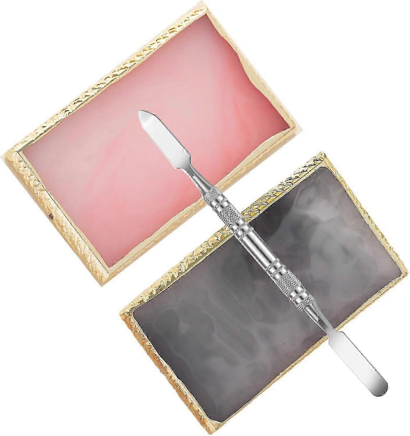 2 Pcs Resin Nail Art Palette Nail Polish Palette Nail Palette Nail Pallet for Nail Art with Stainless Stirring Rod (Pink and gray)