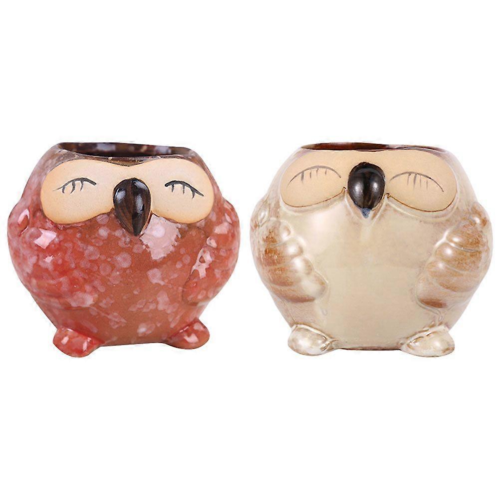 2Pcs Cartoon Ceramic Flower Pot Household Owl Modeling Succulent Planting Pot