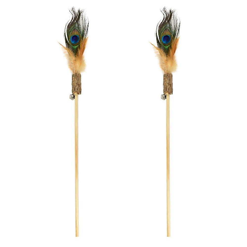 2Pcs Cat Teaser Toys Cat Playthings Feather Wooden Rods Pet Cat Catcher