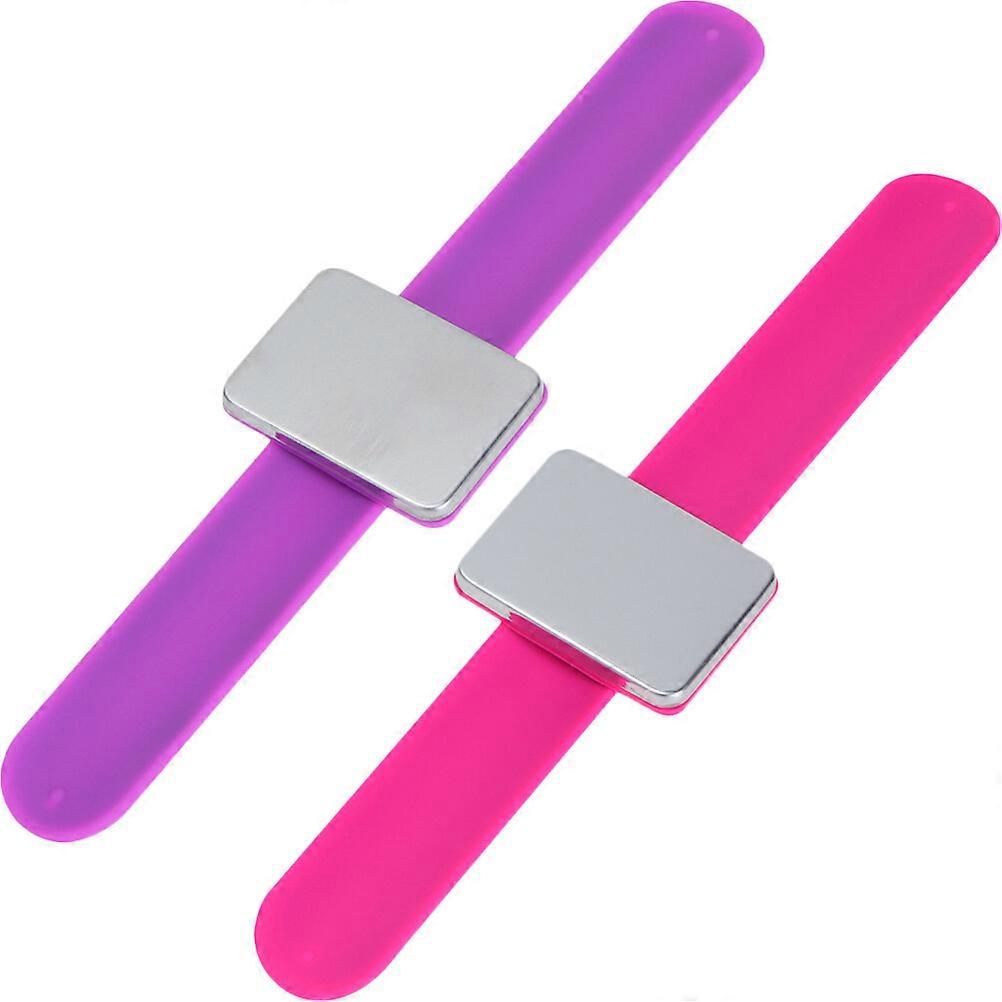 Description This item is a magnetic pin bracelets set with simple appearance, which are made of premium materials, which can provide great flexibility for a long time, and it will not break or scratch your skin. The slap bracelets with magnets are durable, safe, and can be worn for an extended period of time. Features - Color: Purple and rose red -Material:Silicone, magnet - Size: 24.00X5.50X1.00cm/9.43X2.16X0.39in - Made of high-grade material, durable and lightweight. You wont feel any discomfort when you wear it on your hand. - Strong magnetic force, can hold hair clip or other hair tools tightly, Also suitable for sewing needles, small scissors. - Can be bent easily, you can bend it according to your wrist dimensionality. - Can easily be put on your wrist and remove conveniently without hurting your hands. -The whole appearance design ofproduct is simple and generous.Magnetic pin wristband allows you to pick up several needles safely and quickly Packing list2 x Slap Bracelets