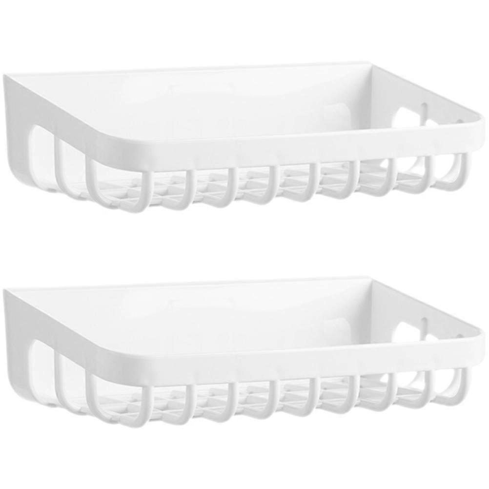 2pcs No Drilling Shower Baskets Adhesive Bathroom Wall Organizer Drain Shampoo Holder