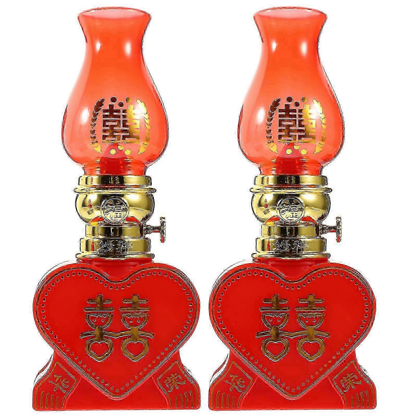 2Pcs Wedding Celebration Kerosene Lamp Home Camping Lamp Chinese-style Red Oil Light